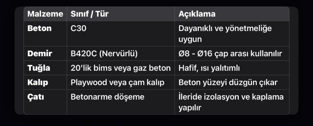 •Kolon ve kiriş betonu C30 sınıfı ile dökülür.